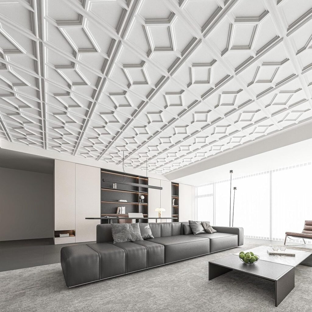 Modern 3D panels for walls & ceilings. Elevate any room with sleek geometric style.